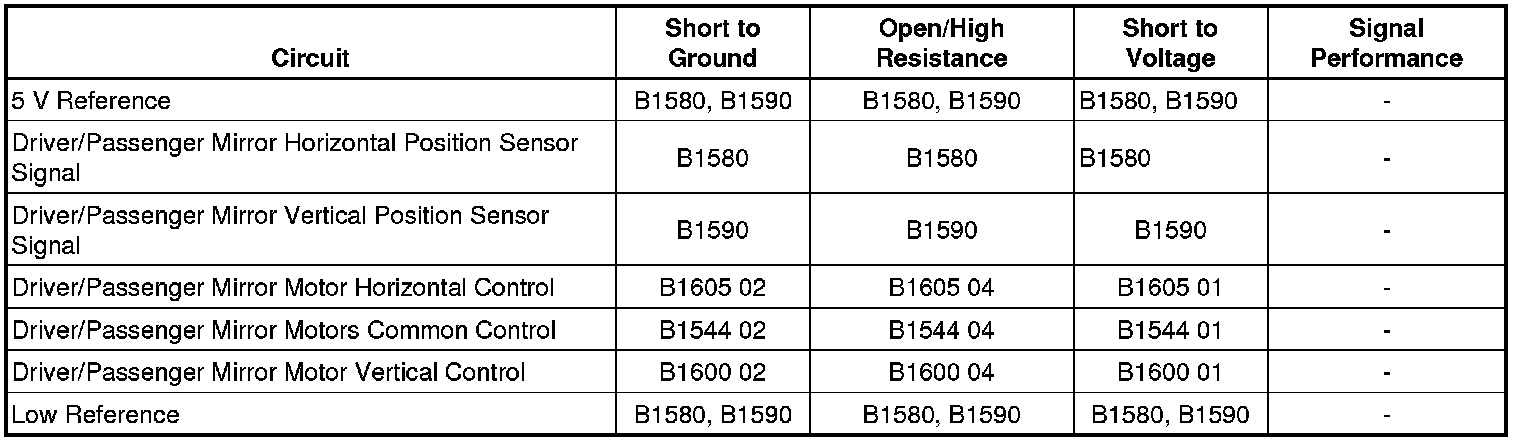If a mirror does not move in all the commanded directions, refer to Mirror Motor Circuit Test.