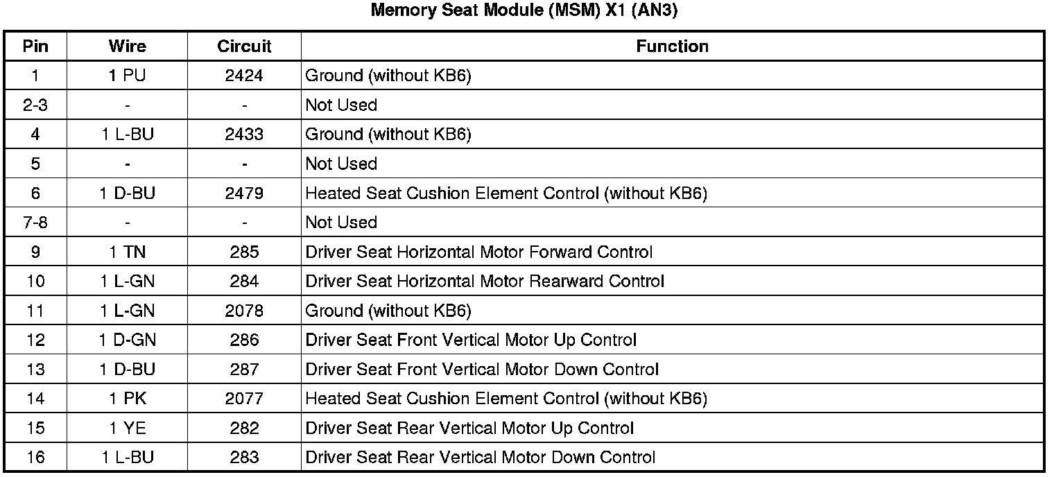 Memory Seat Module (MSM) X1 (AN3)
