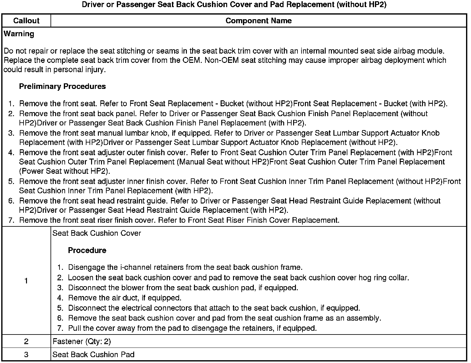 Driver or Passenger Seat Back Cushion Cover and Pad Replacement