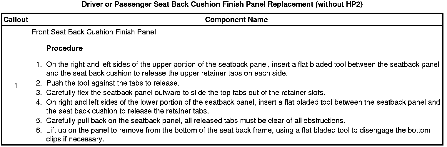 Driver or Passenger Seat Back Cushion Finish Panel Replacement