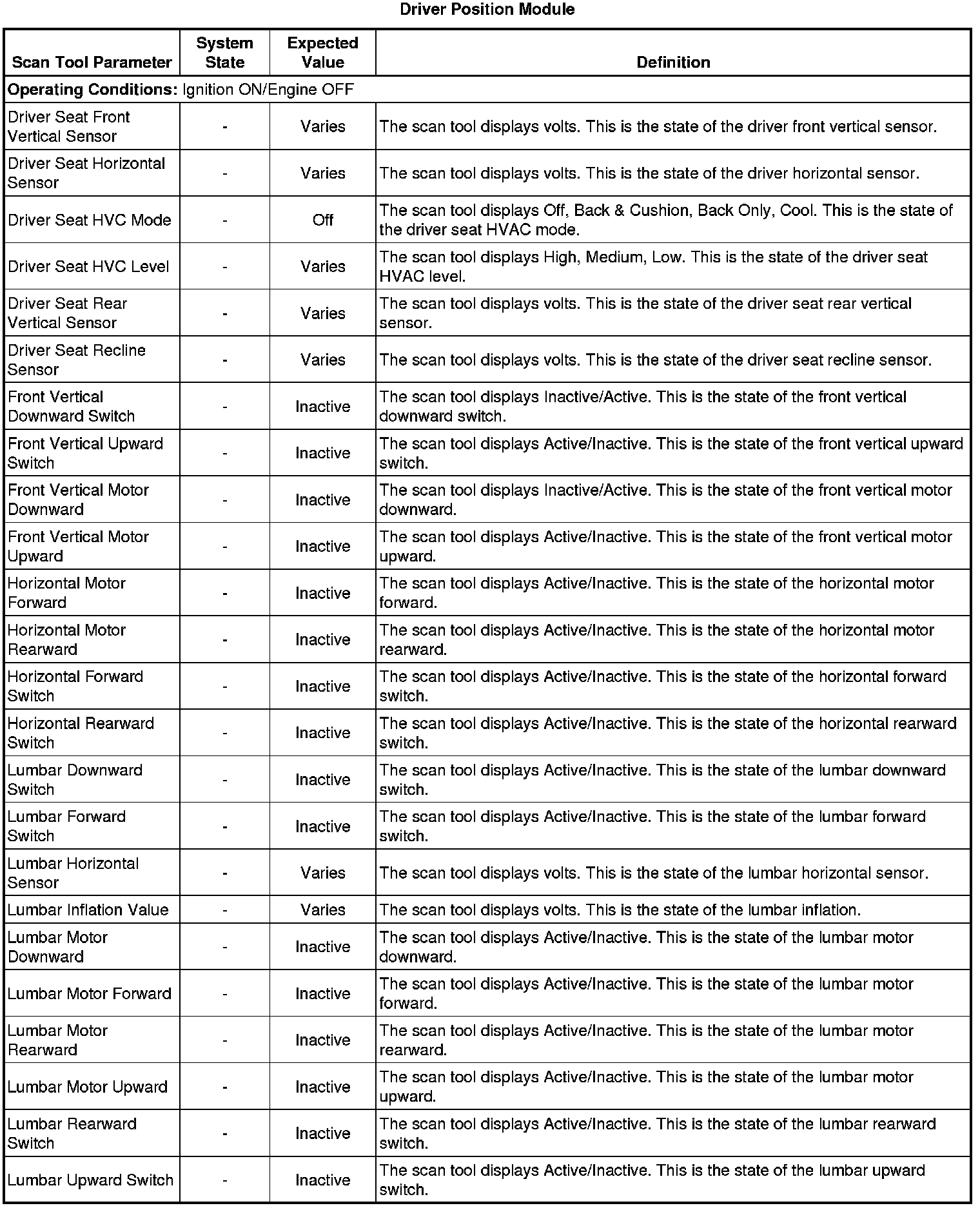 Driver Seat Adjuster Memory Module Scan Tool Information