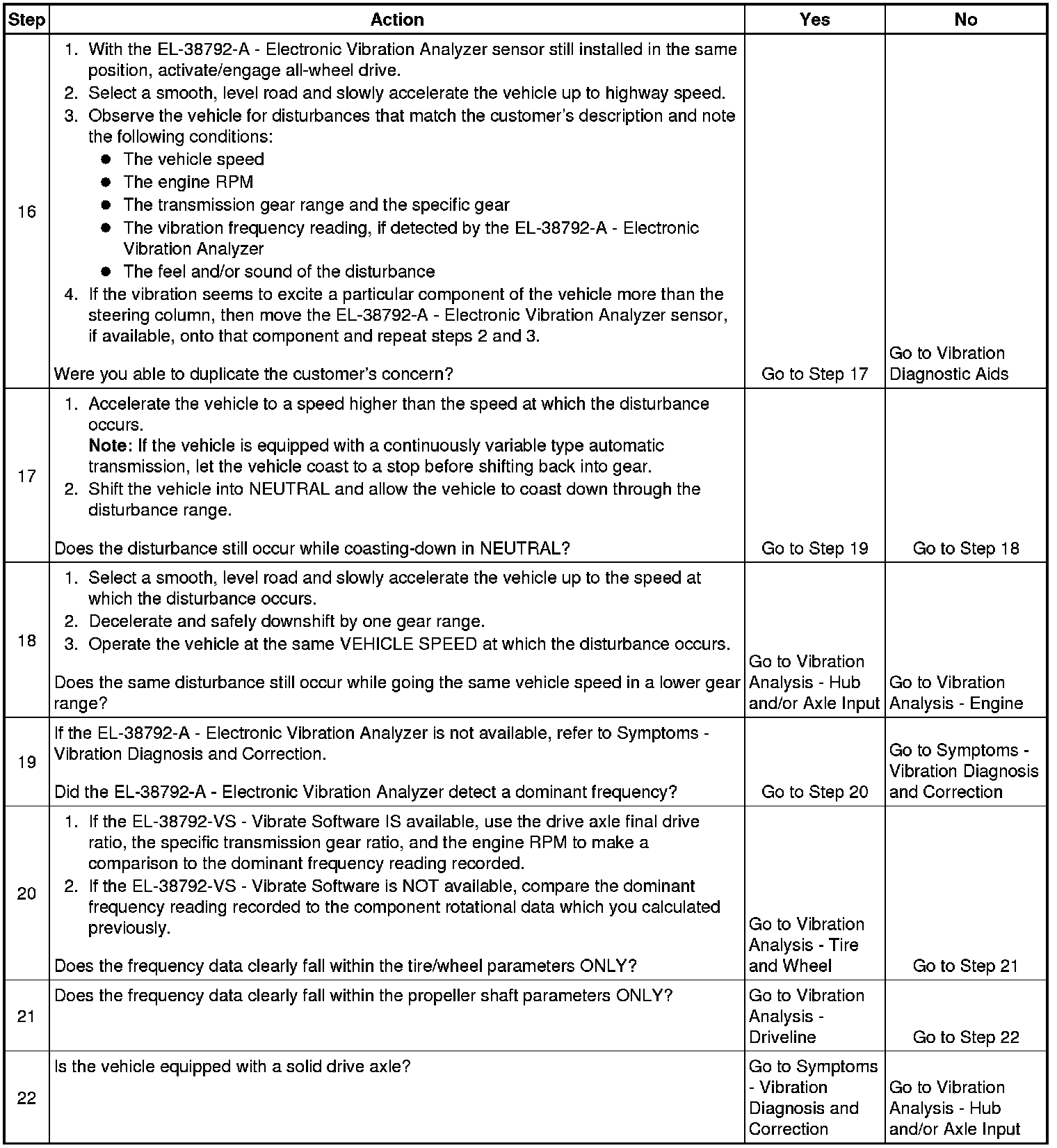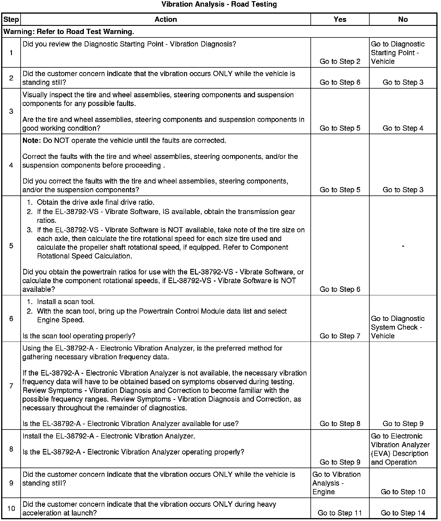 Obtaining rotational speed for the components rotating at tire/wheel speed is critical to systematically eliminating specific vehicle component groups. These component rotational speeds can be generated by using the EL-38792-VS - Vibrate Software, or through calculating them manually.