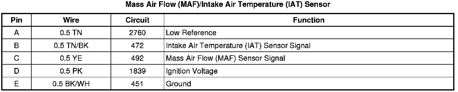 Mass Air Flow (MAF)/Intake Air Temperature (IAT) Sensor
