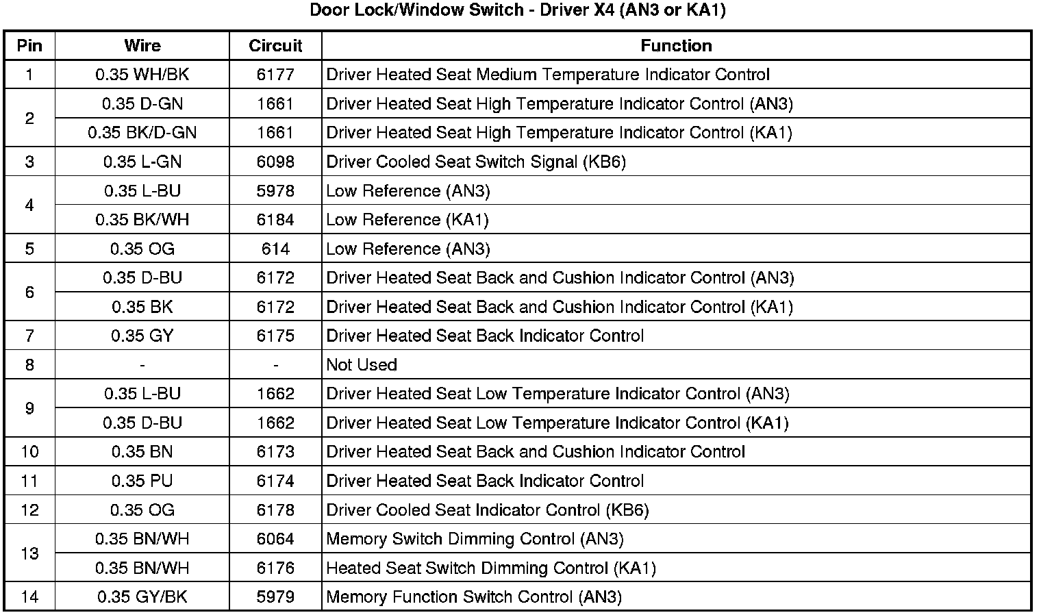 Door Lock/Window Switch - Driver X4 (AN3 or KA1)