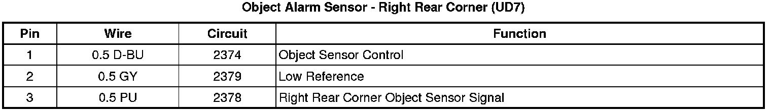 Object Alarm Sensor - Right Rear Corner (UD7)