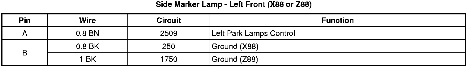 Side Marker Lamp - Left Front (X88 or Z88)