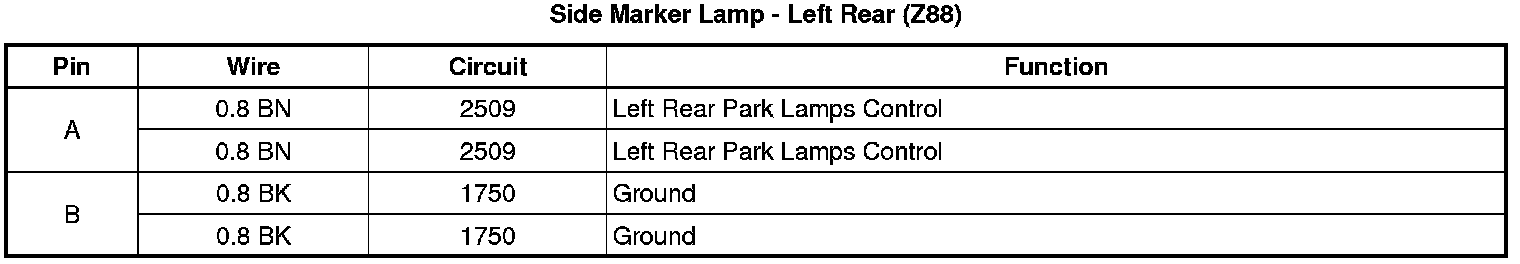 Side Marker Lamp - Left Rear (Z88)