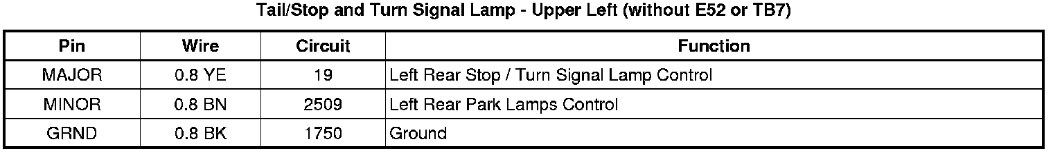 Tail/Stop and Turn Signal Lamp - Upper Left (without E52 or TB7)