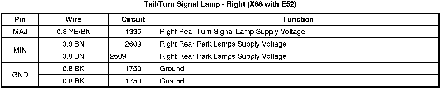 Tail/Turn Signal Lamp - Right (X88 with E52)