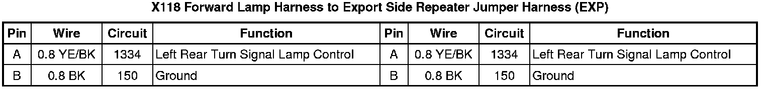 X118 Forward Lamp Harness to Export Side Repeater Jumper Harness (EXP)