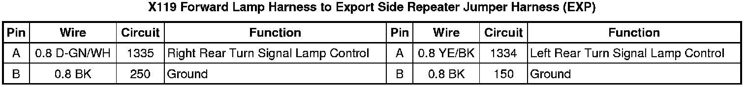 X119 Forward Lamp Harness to Export Side Repeater Jumper Harness (EXP)