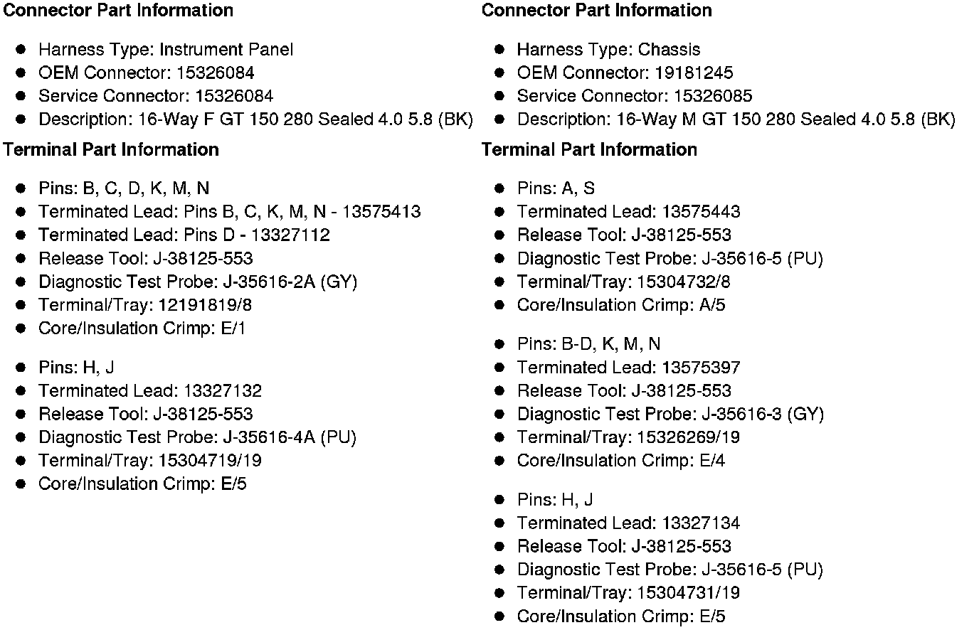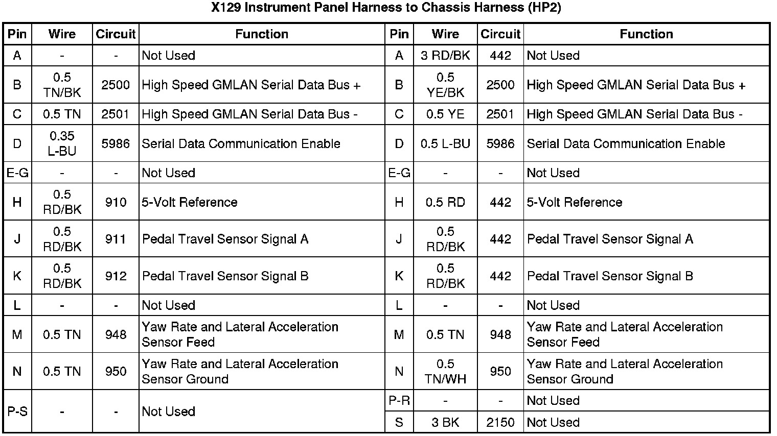 X129 Instrument Panel Harness to Chassis Harness (HP2)