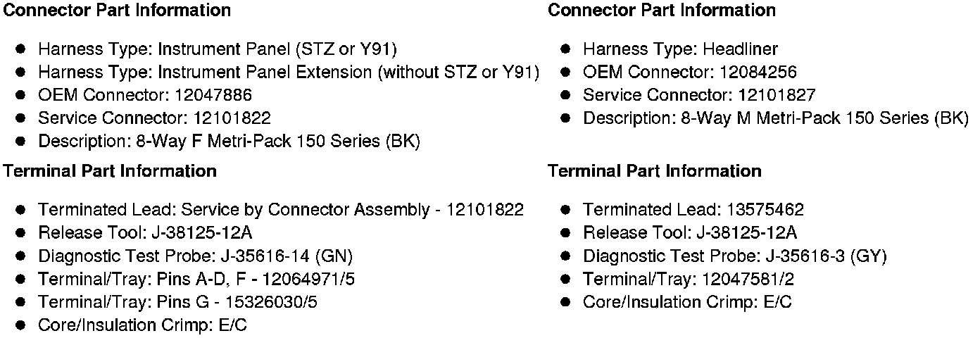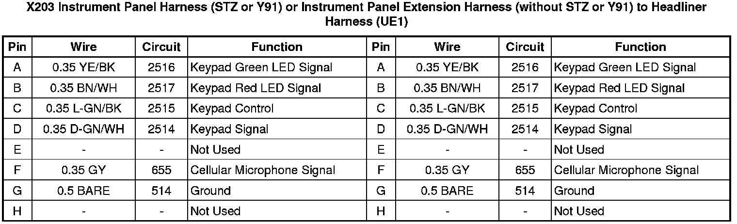 X203 Instrument Panel Harness (STZ or Y91) or Instrument Panel Extension Harness (without STZ or Y91) to