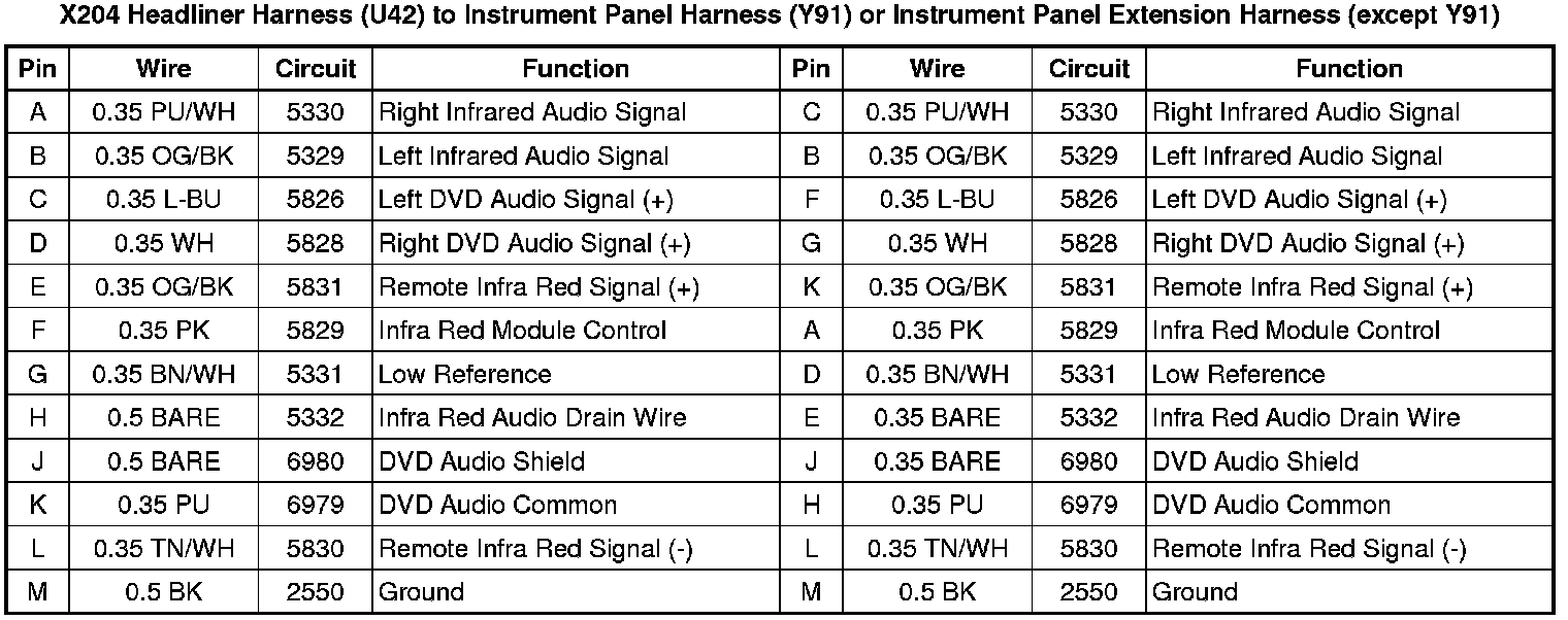 Harness (U42) to Instrument Panel Harness (Y91) or Instrument Panel Extension Harness (except Y91)