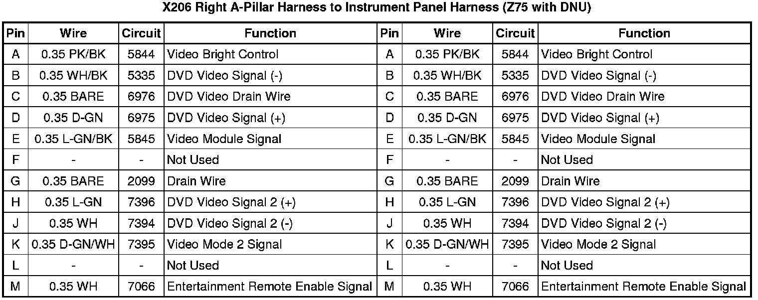 X206 Right A-Pillar Harness to Instrument Panel Harness (Z75 with DNU)