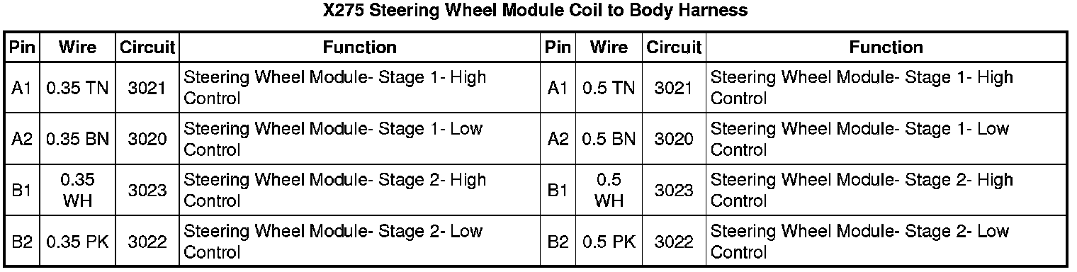 X275 Steering Wheel Module Coil to Body Harness