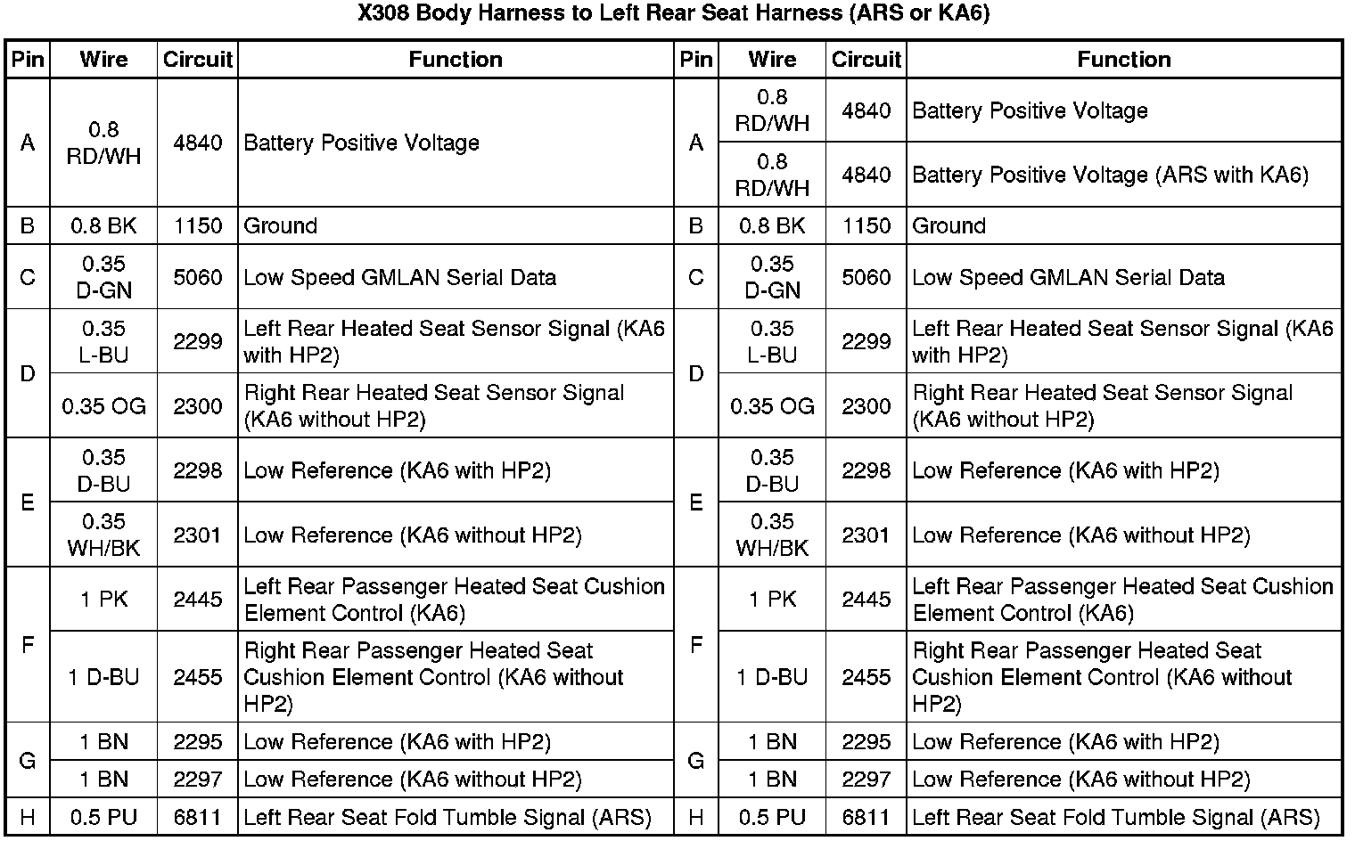 X308 Body Harness to Left Rear Seat Harness (ARS or KA6)