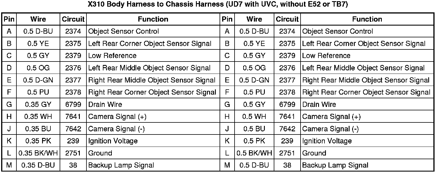X310 Body Harness to Chassis Harness (UD7 with UVC, without E52 or