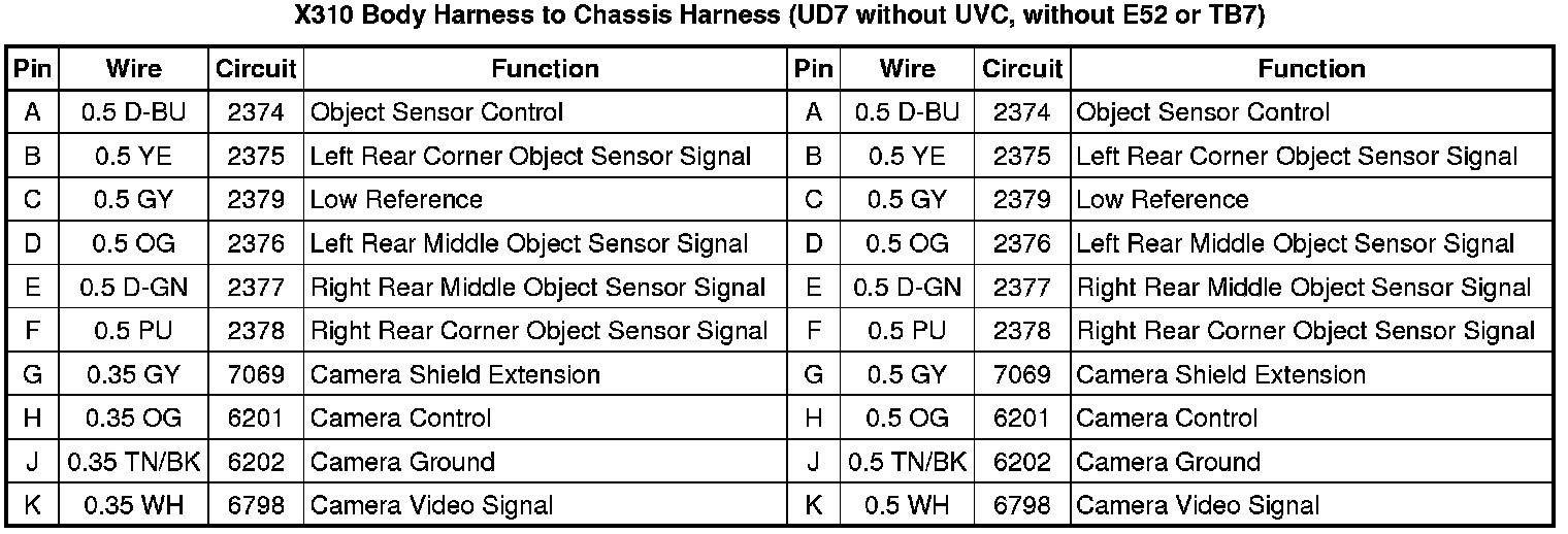 X310 Body Harness to Chassis Harness (UD7 without UVC, without E52 or