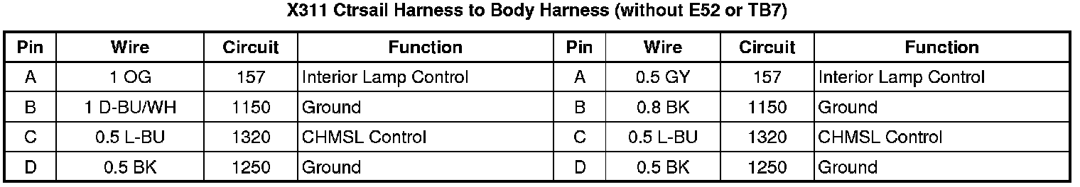 X311 Ctrsail Harness to Body Harness (without E52 or