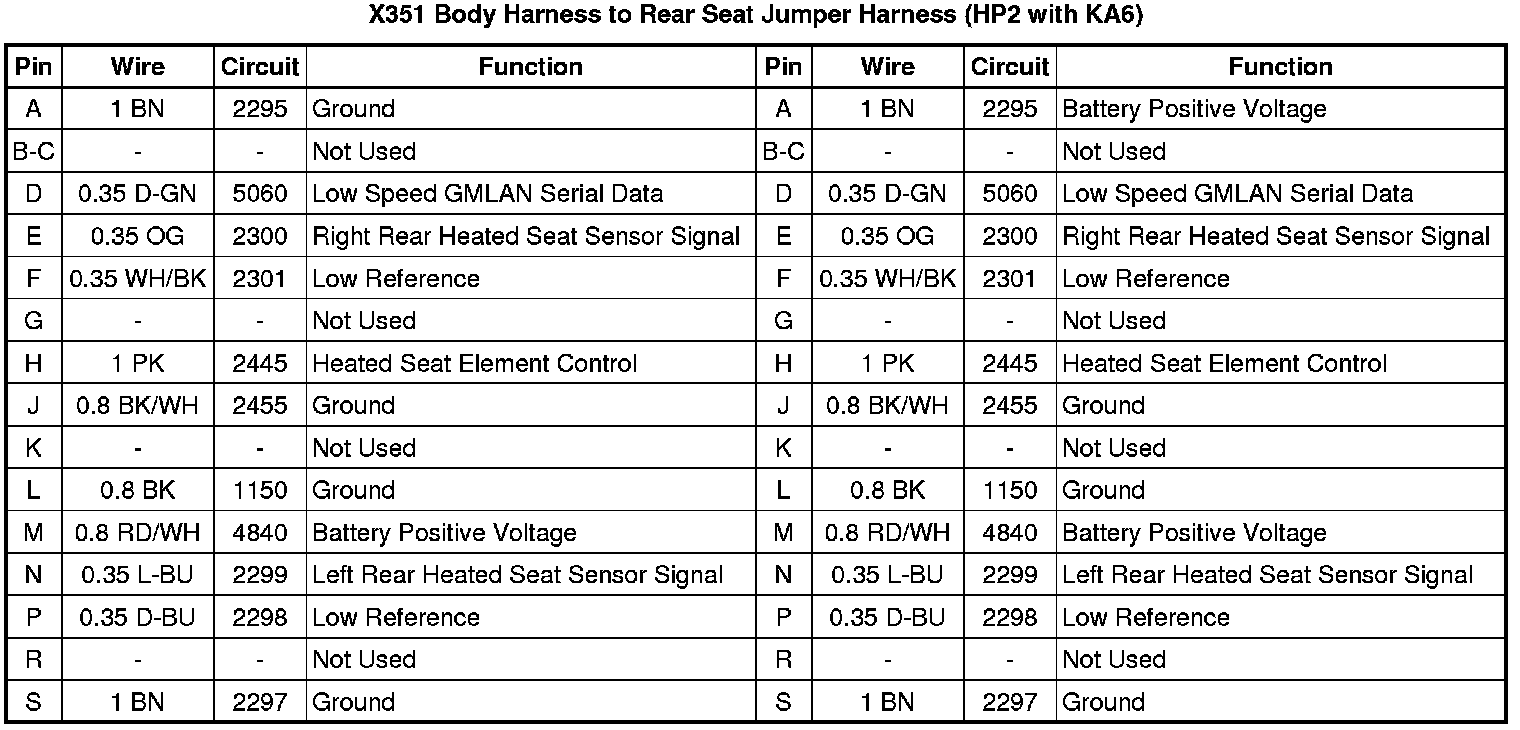 X351 Body Harness to Rear Seat Jumper Harness (HP2 with KA6)