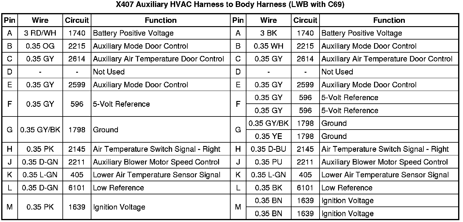 X407 Auxiliary HVAC Harness to Body Harness (LWB with C69)