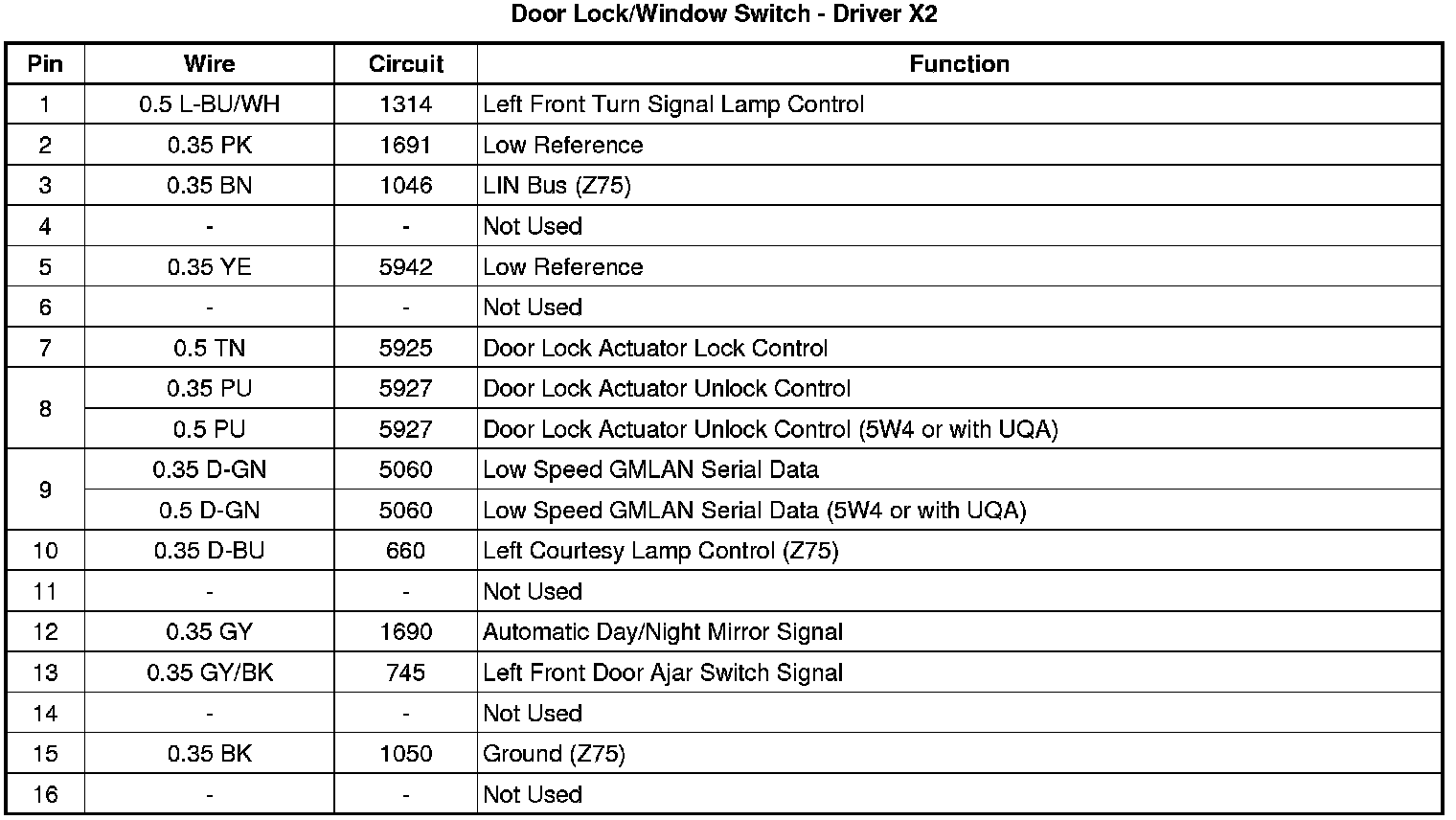 Door Lock/Window Switch - Driver X2