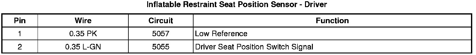 Inflatable Restraint Seat Position Sensor - Driver