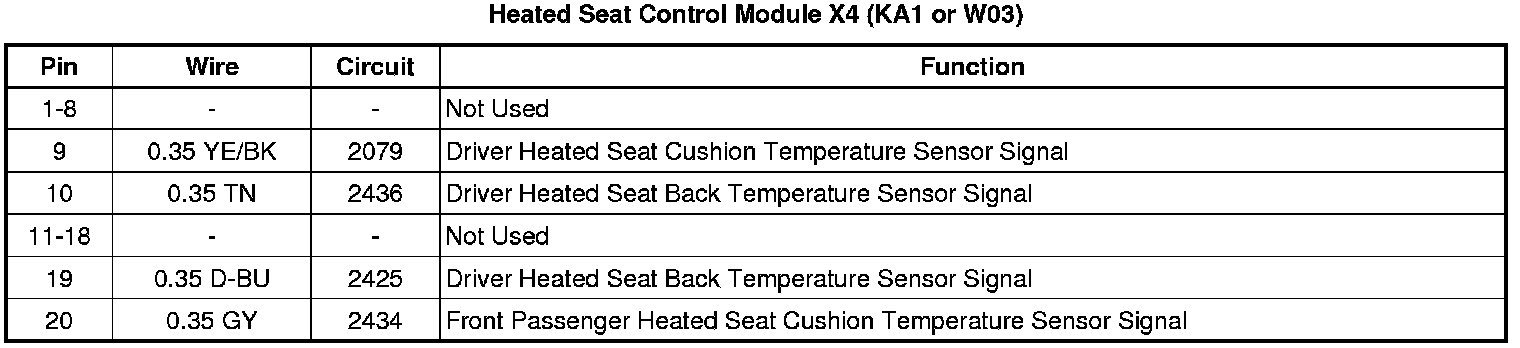Heated Seat Control Module X4 (KA1 or W03)