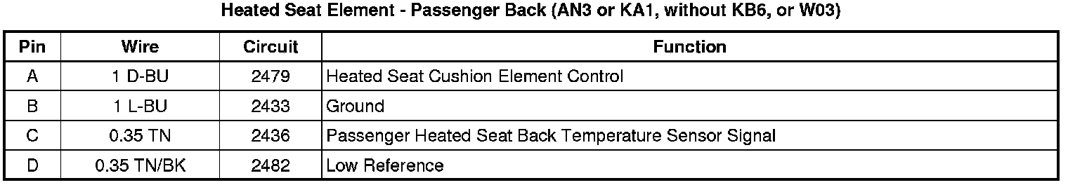 Heated Seat Element - Passenger Back (AN3 or KA1, without KB6, or W03)