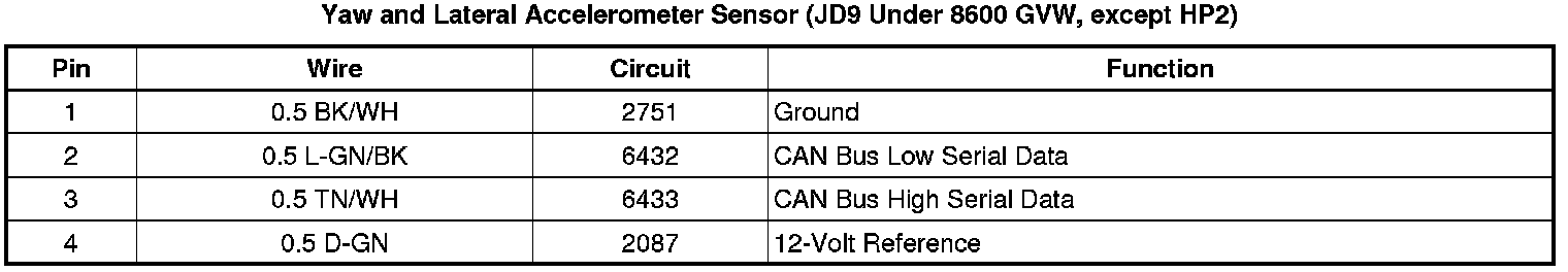 Yaw and Lateral Accelerometer Sensor (JD9 Under 8600 GVW)