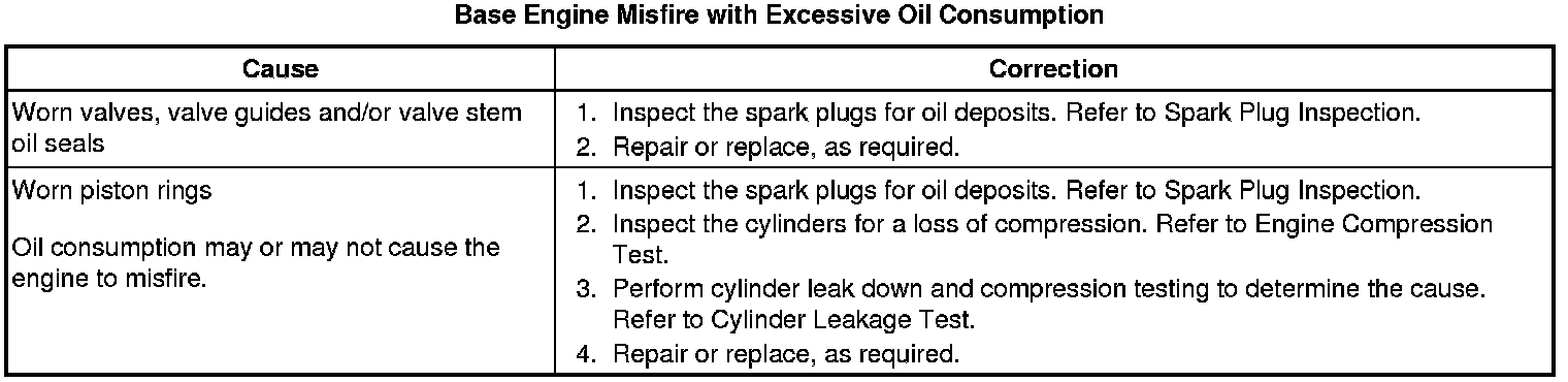Base Engine Misfire with Excessive Oil Consumption