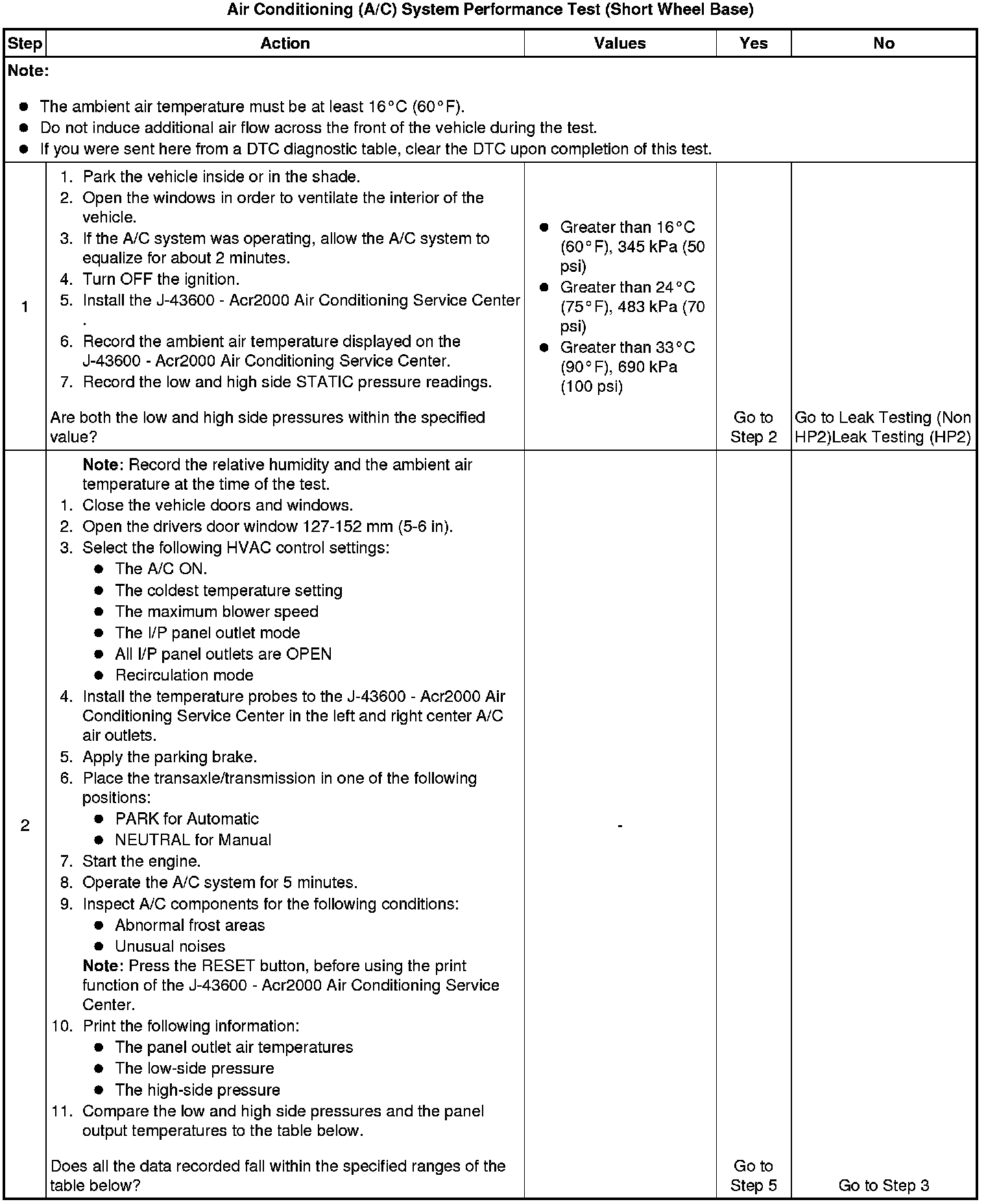 Air Conditioning (A/C) System Performance Test (Short Wheel Base)