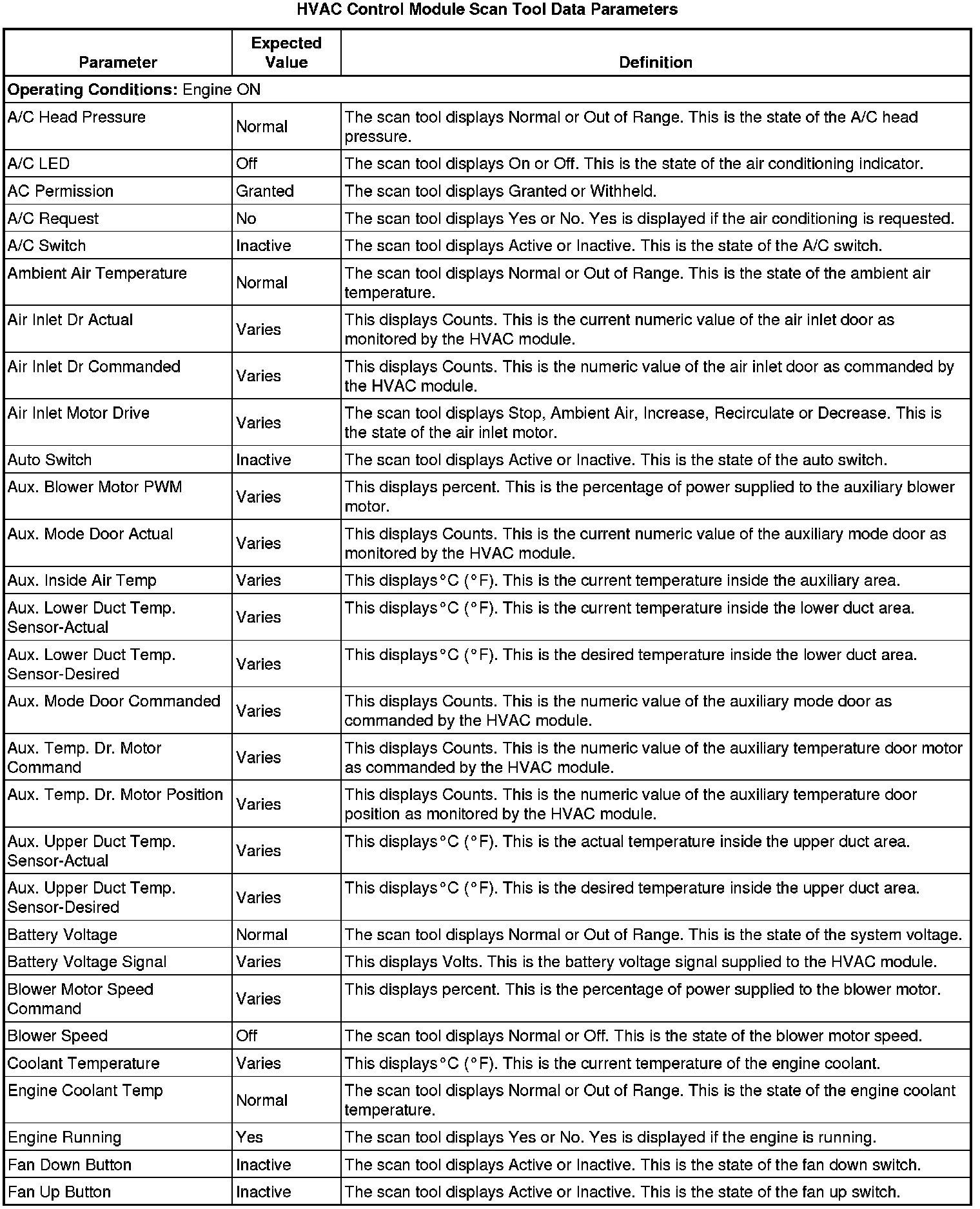 Heating, Ventilation and Air Conditioning Control Module Scan Tool Information