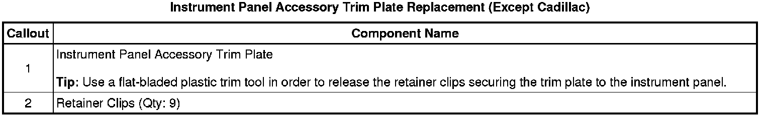 Instrument Panel Accessory Trim Plate Replacement (Except Cadillac)