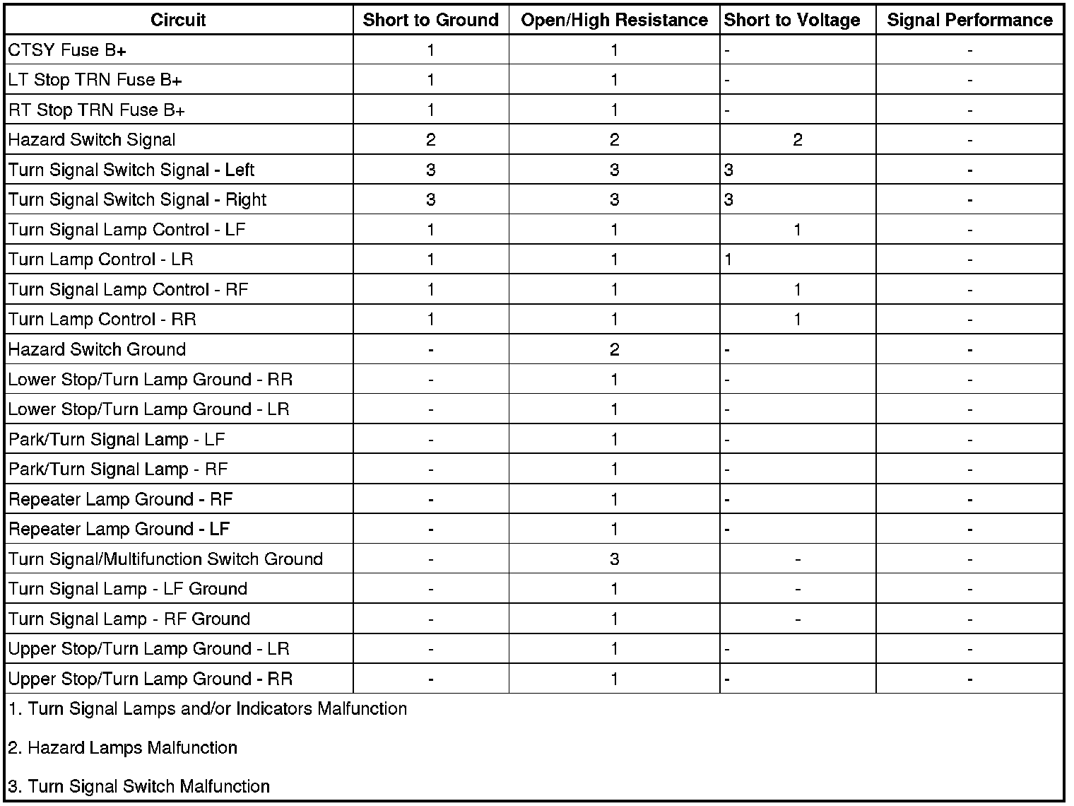 Turn Signal Lamp Malfunction