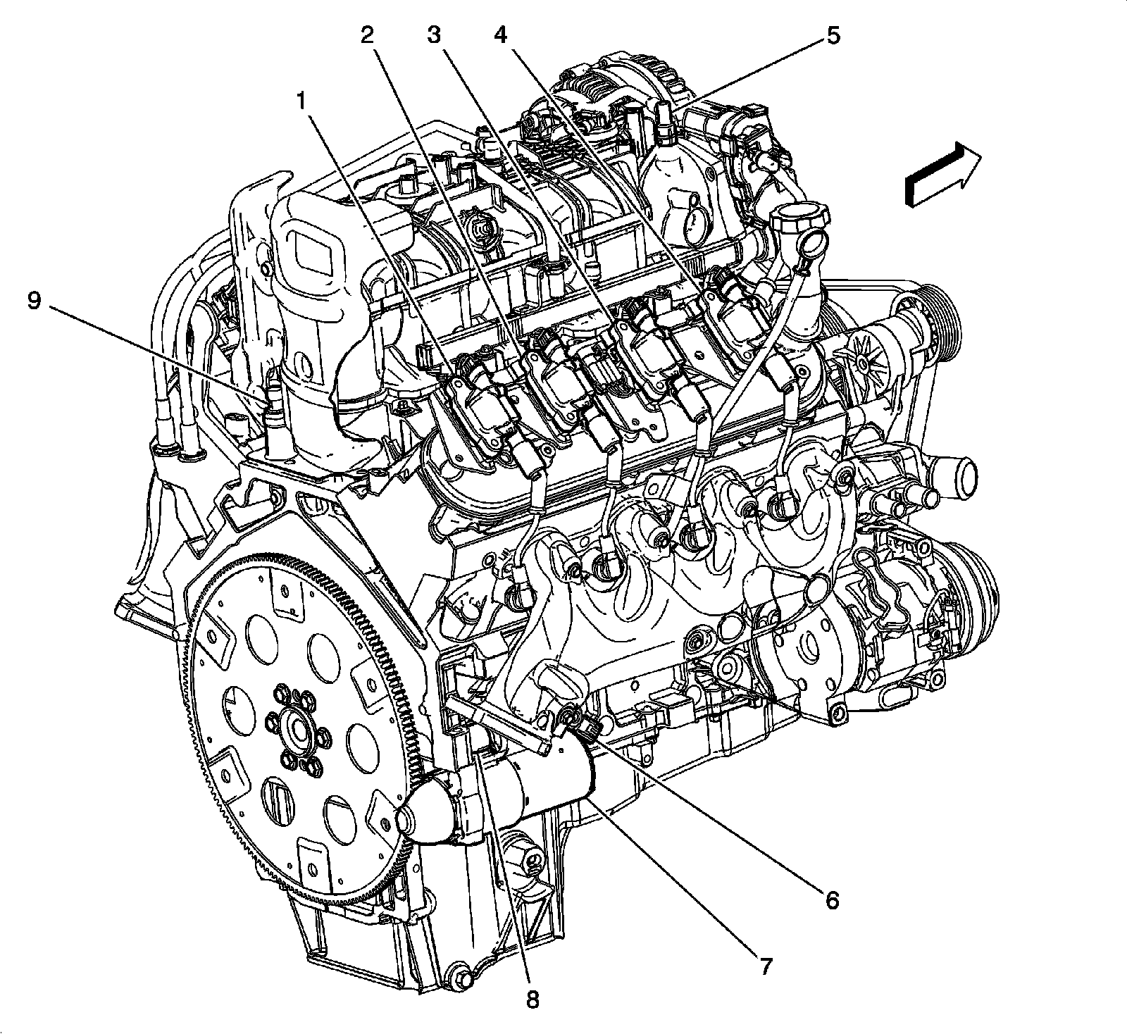 Rear and Right Side of Engine Components (except LZ1)