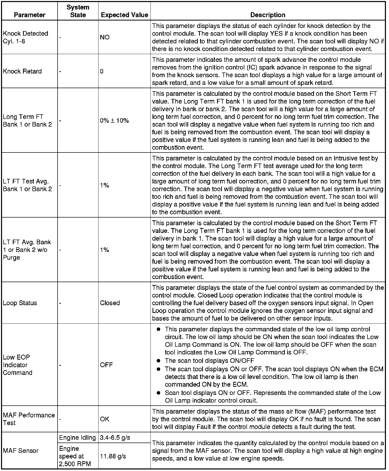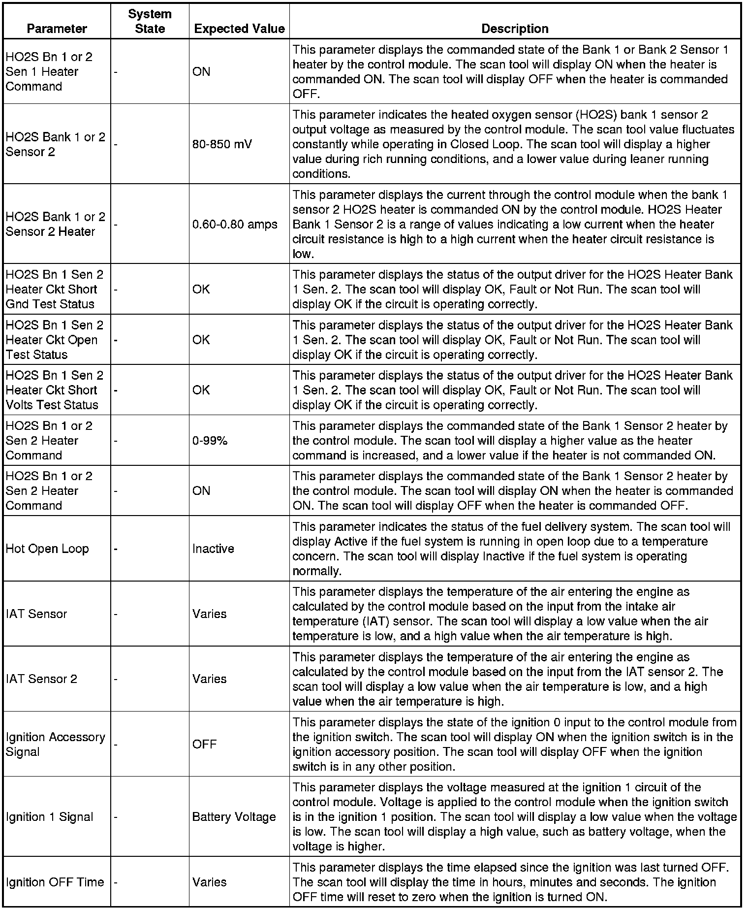 The Engine Control Module Scan Tool Data List contains all engine-related parameters that are available on the scan tool. The list is arranged in alphabetical order. A given parameter may appear in any one of the data lists, and in some cases may appear more than once, or in more than one data list in order to group certain related parameters together.