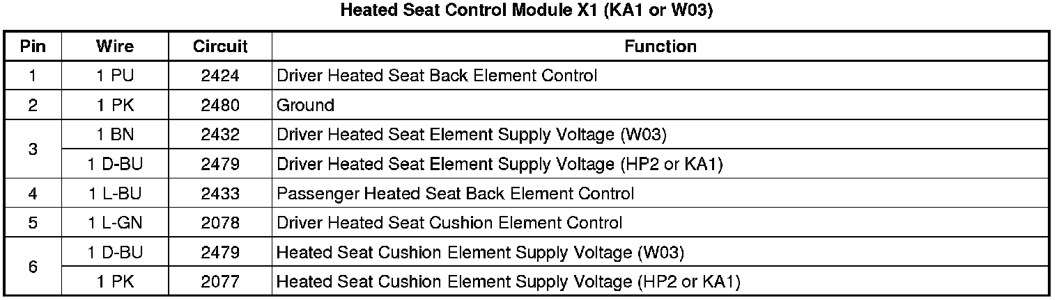 Heated Seat Control Module X1 (KA1 or W03)