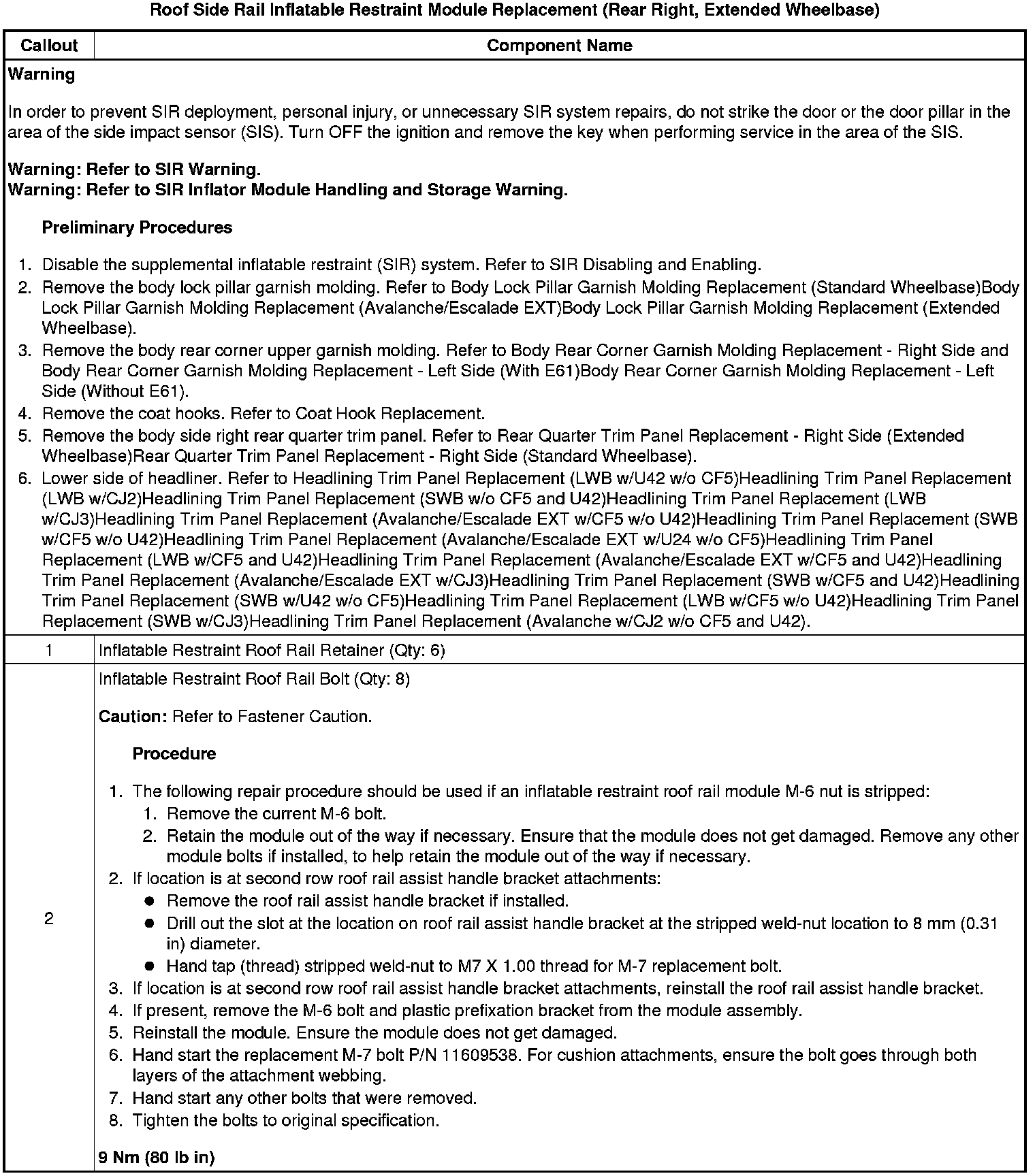 Roof Side Rail Inflatable Restraint Module Replacement (Rear Right, Extended Wheelbase)