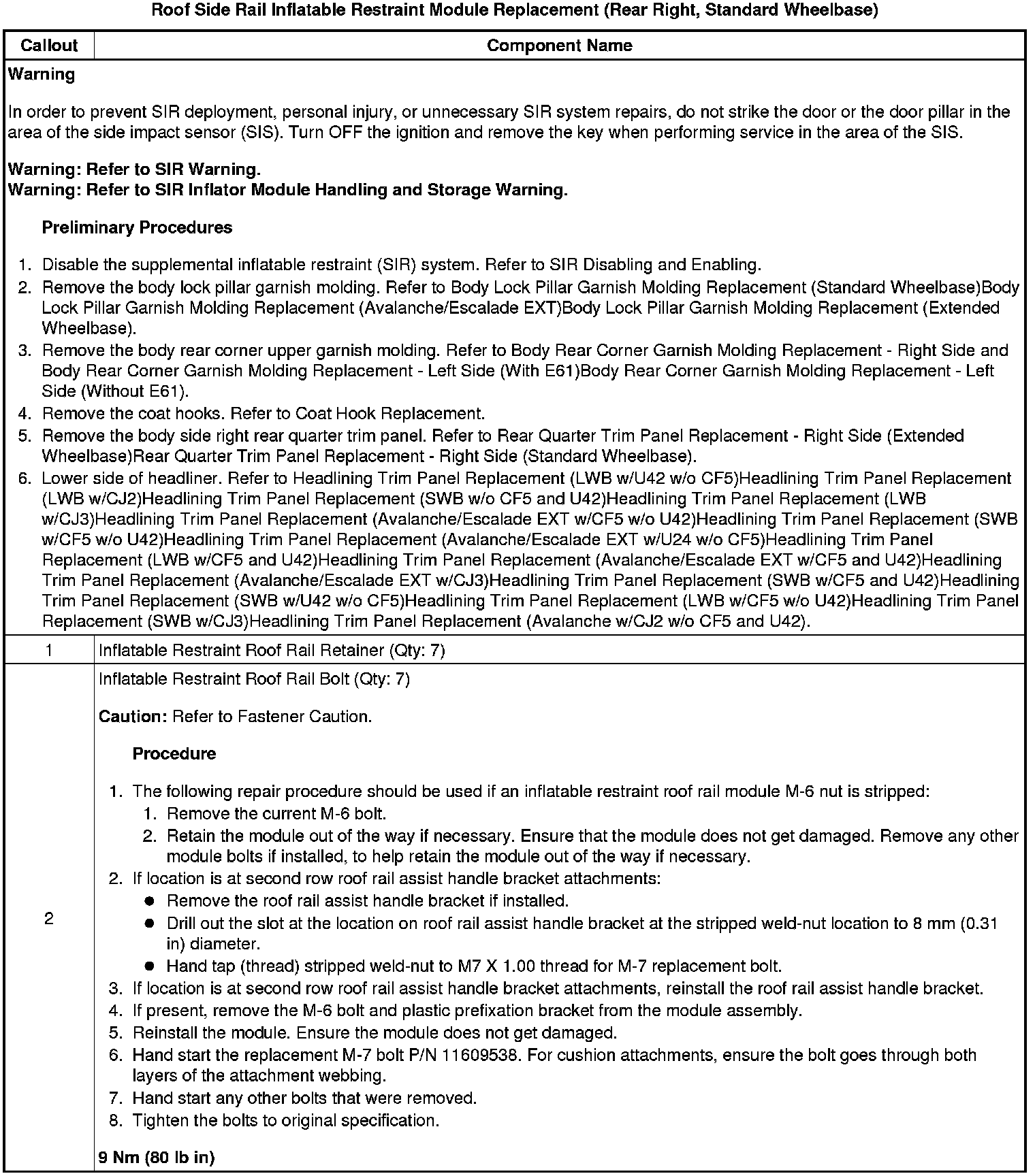 Roof Side Rail Inflatable Restraint Module Replacement (Rear Right, Standard Wheelbase)