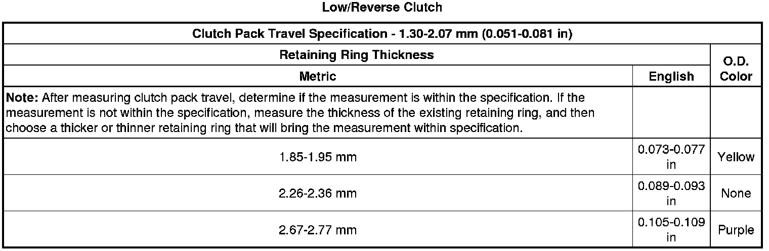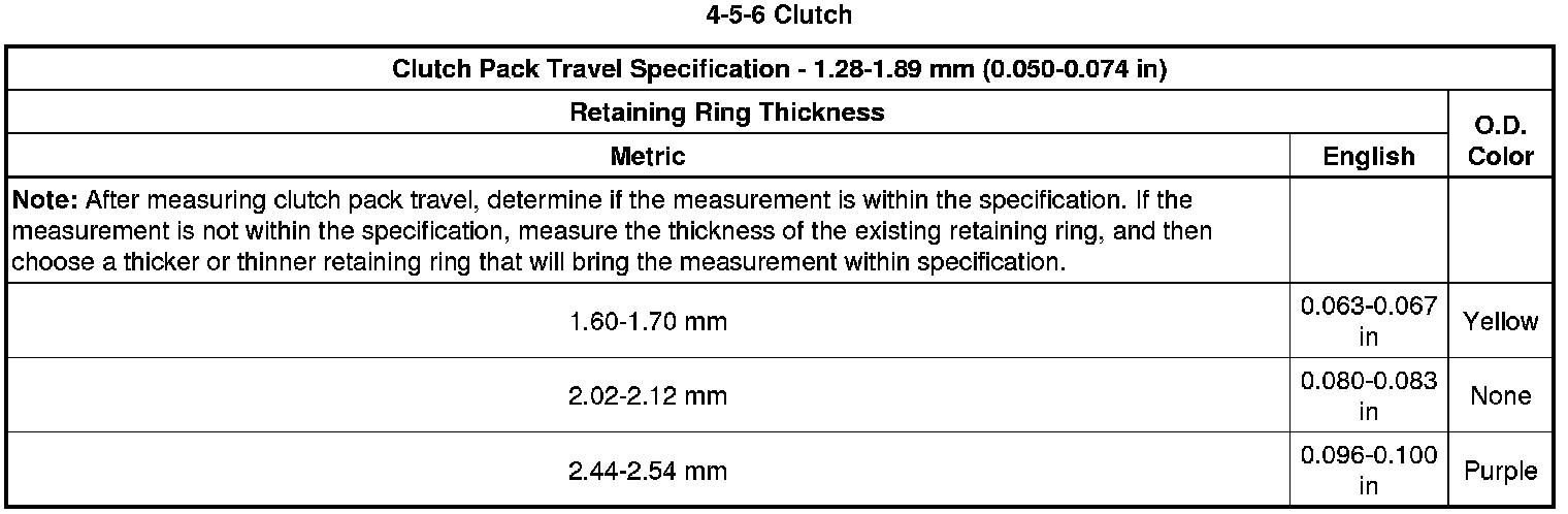 Clutch Backing Plate Retaining Ring Specifications (6L80)