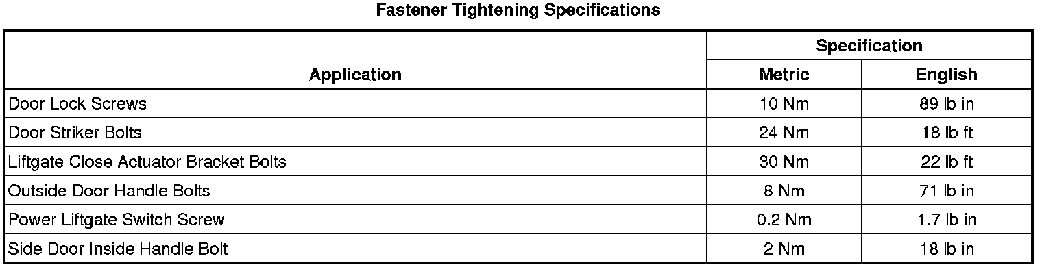 Fastener Tightening Specifications
