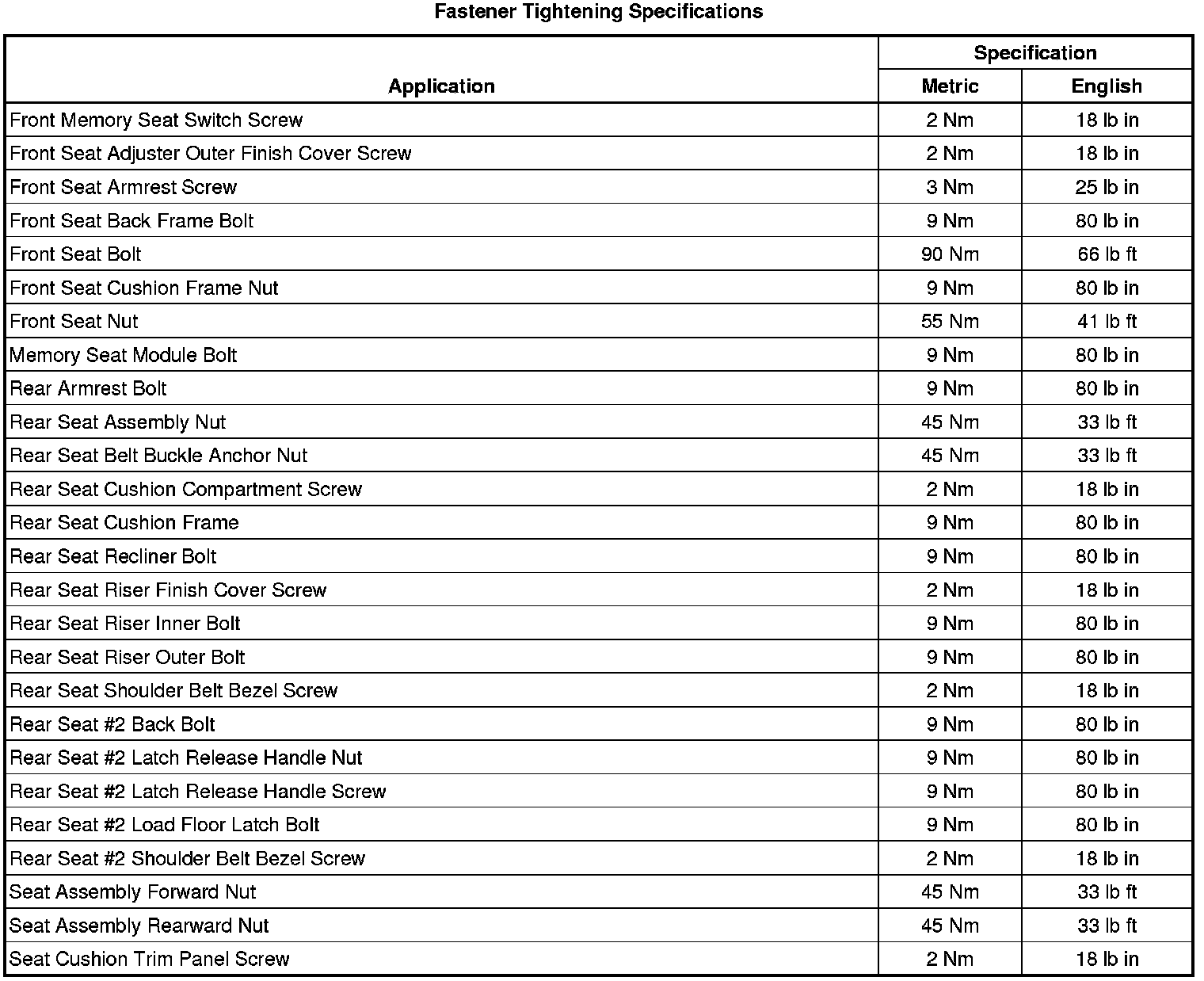 Fastener Tightening Specifications