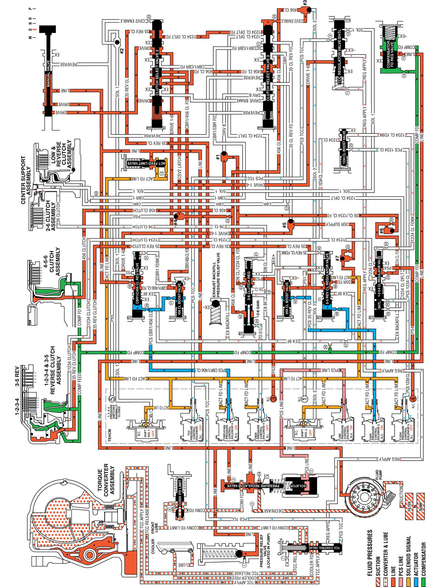 The torque converter clutch (TCC) pressure control solenoid will default to it's normal state, OFF. PCS TCC fluid will exhaust from the TCC control valve, and spring force will shuttle the valve to the off position. TCC apply fluid will then be routed to the cooler, and TCC release fluid will be routed to the torque converter for complete TCC release.