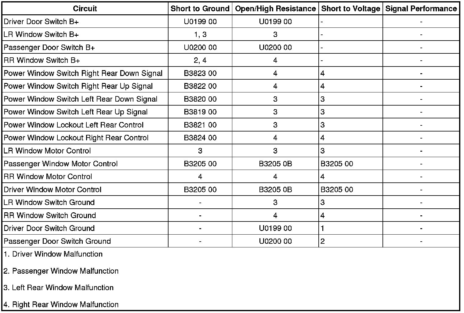 • If either rear passenger power window malfunctions, refer to Rear Passenger Window Malfunction.