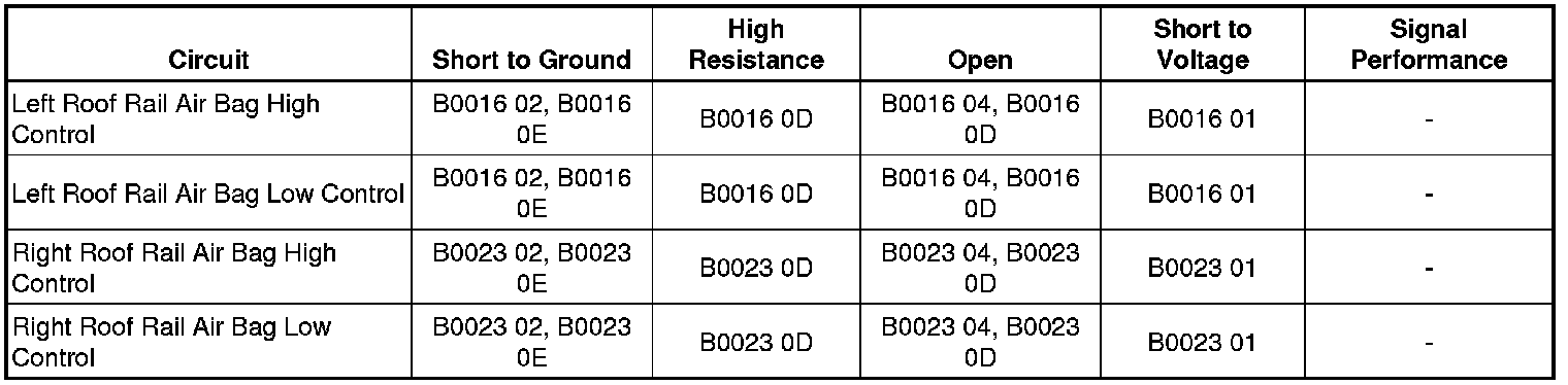 - Left Roof Rail Air Bag Deployment Loop Short to Ground