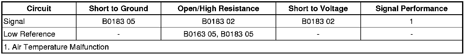 The passenger compartment temperature sensor is a negative temperature co-efficient thermistor. A signal and low reference circuit enables the sensor to operate. As the air temperature increases, the sensor resistance decreases. The sensor signal varies between 0-5 V.