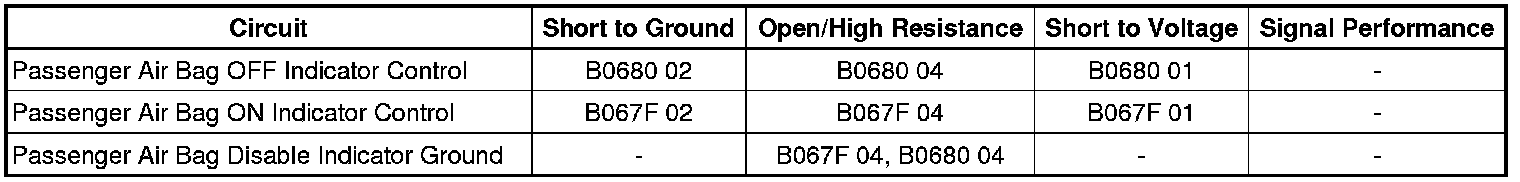 - Passenger Air Bag Off Indicator Circuit Short to Ground