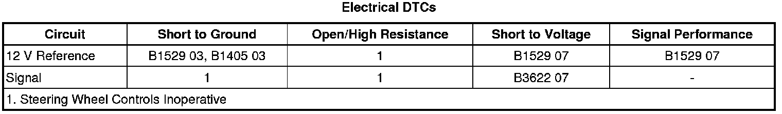 2. Test the resistance between the signal terminal 2 and the reference voltage terminal 1 while pressing the appropriate steering wheel controls switch button listed below: